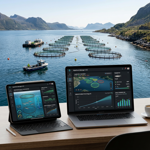 Deniz üzerindeki alabalık kafeslerinizi saniyeler içinde takip edin. Hem Windows hem de Tablet uyumlu yapısıyla kafeslerin durumu, yemleme takibi ve balık büyüme analizleri tek bir merkezden yönetilir.