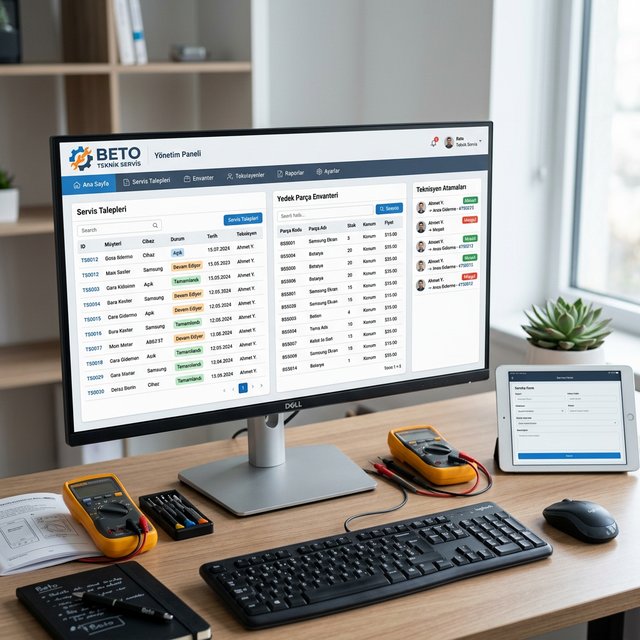 Teknik servis süreçlerinizi dijitalleştirin. Arıza kaydı, parça takibi, personel yönetimi ve müşteri bilgilendirme süreçlerini tek bir platformdan yönetin.